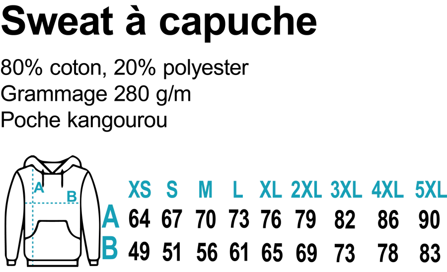 Afin de vous assurer que le produit convient, veuillez vérifier attentivement vos mesures avant de commander. Il est important de noter que nos sweats à capuche taillent petit.
