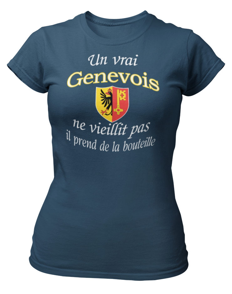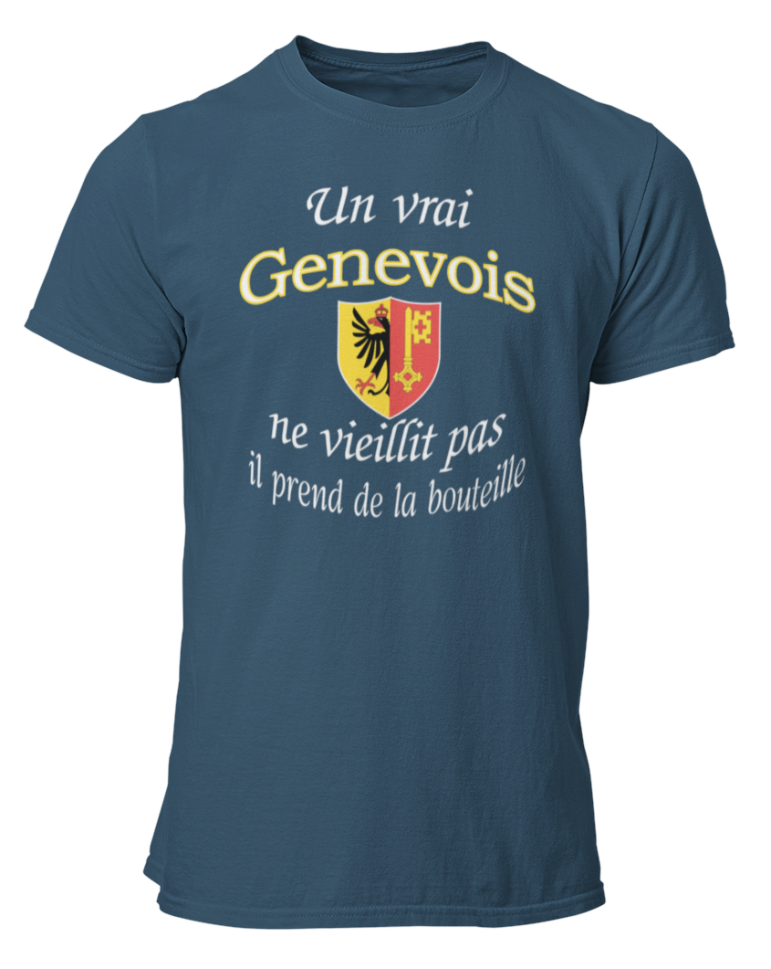 T-shirt Un vrai Genevois ne vieillit pas il prend de la bouteille