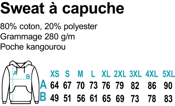 Afin de vous assurer que le produit convient, veuillez vérifier attentivement vos mesures avant de commander. Il est important de noter que nos sweats à capuche taillent petit.