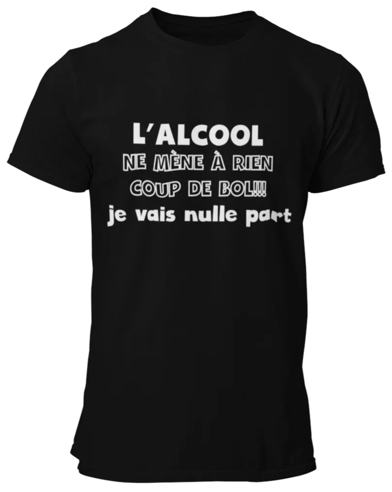 T-shirt L'alcool ne mène à rien, coup de bol!!! Je vais nulle part