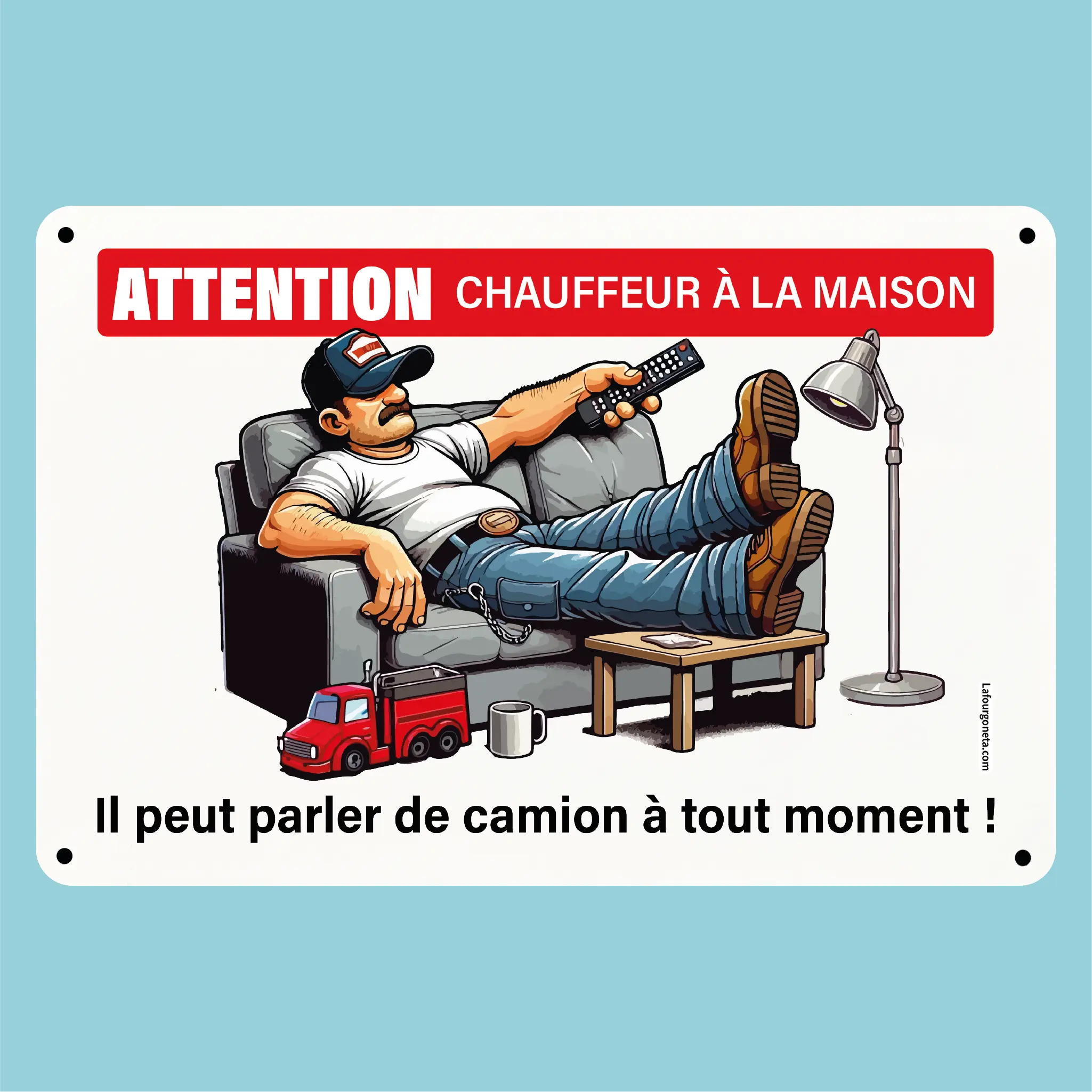 Plaque humoristique: Attention chauffeur à la maison, il peut parler de camion