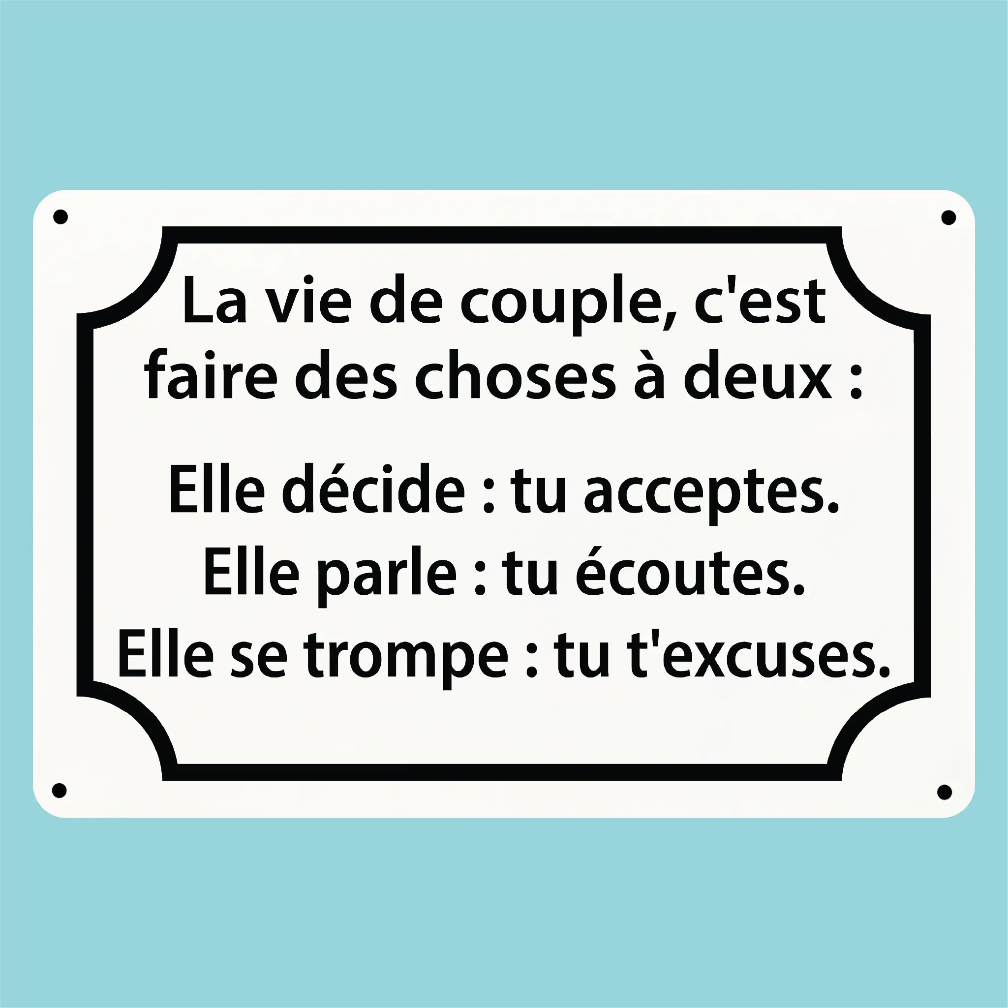 Plaque humoristique: La vie de couple, c'est faire des choses à deux