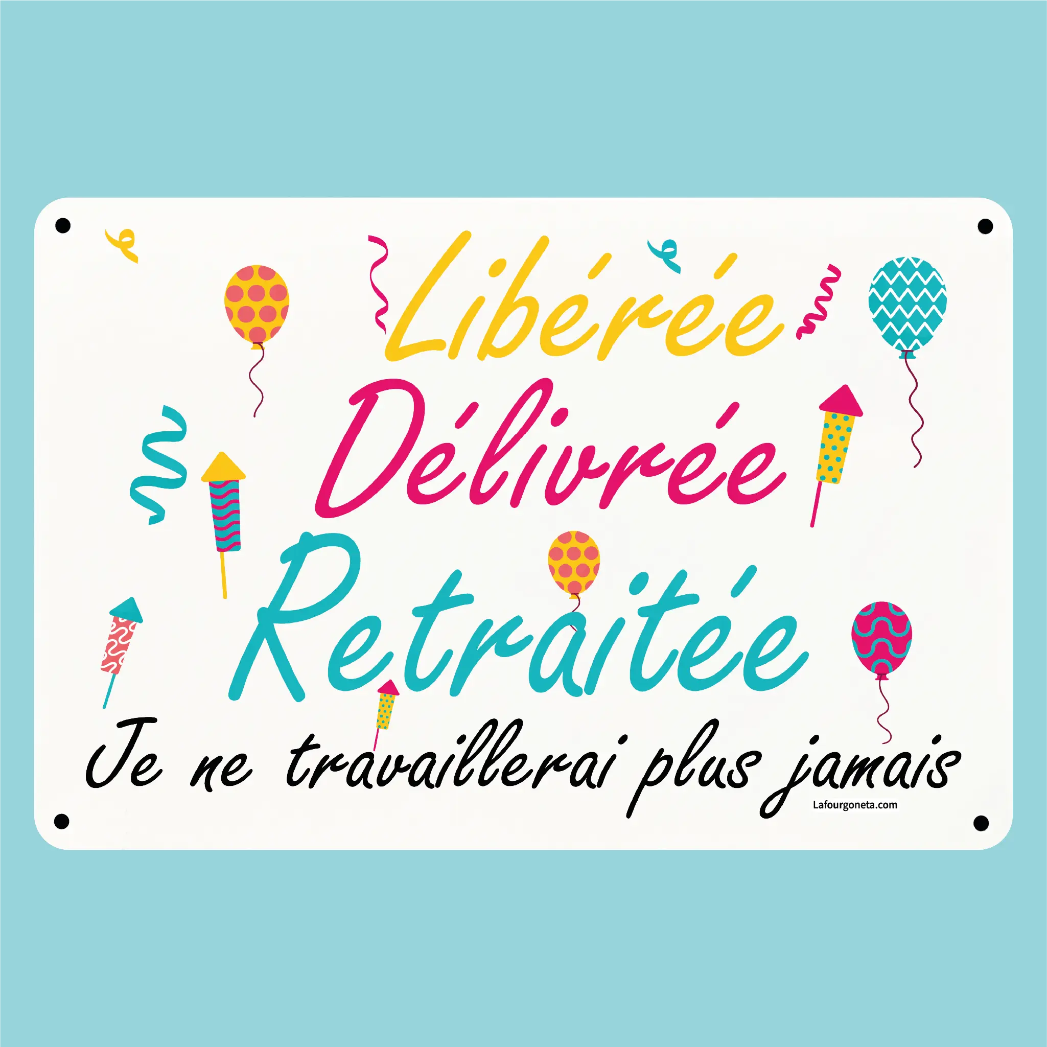 Plaque humoristique: Libérée, délivrée, retraitée (femme)