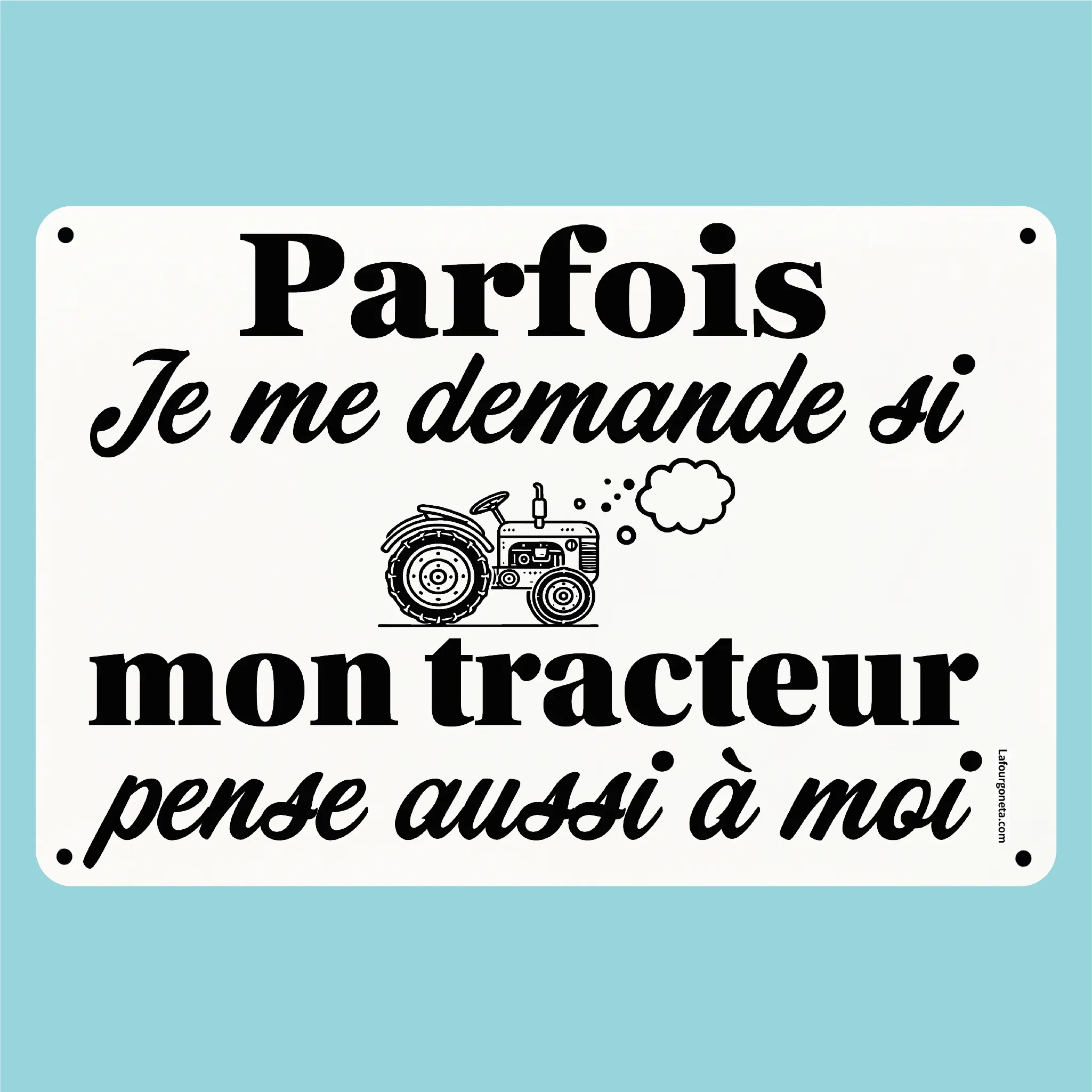 Plaque humoristique: Mon tracteur pense t'il à moi