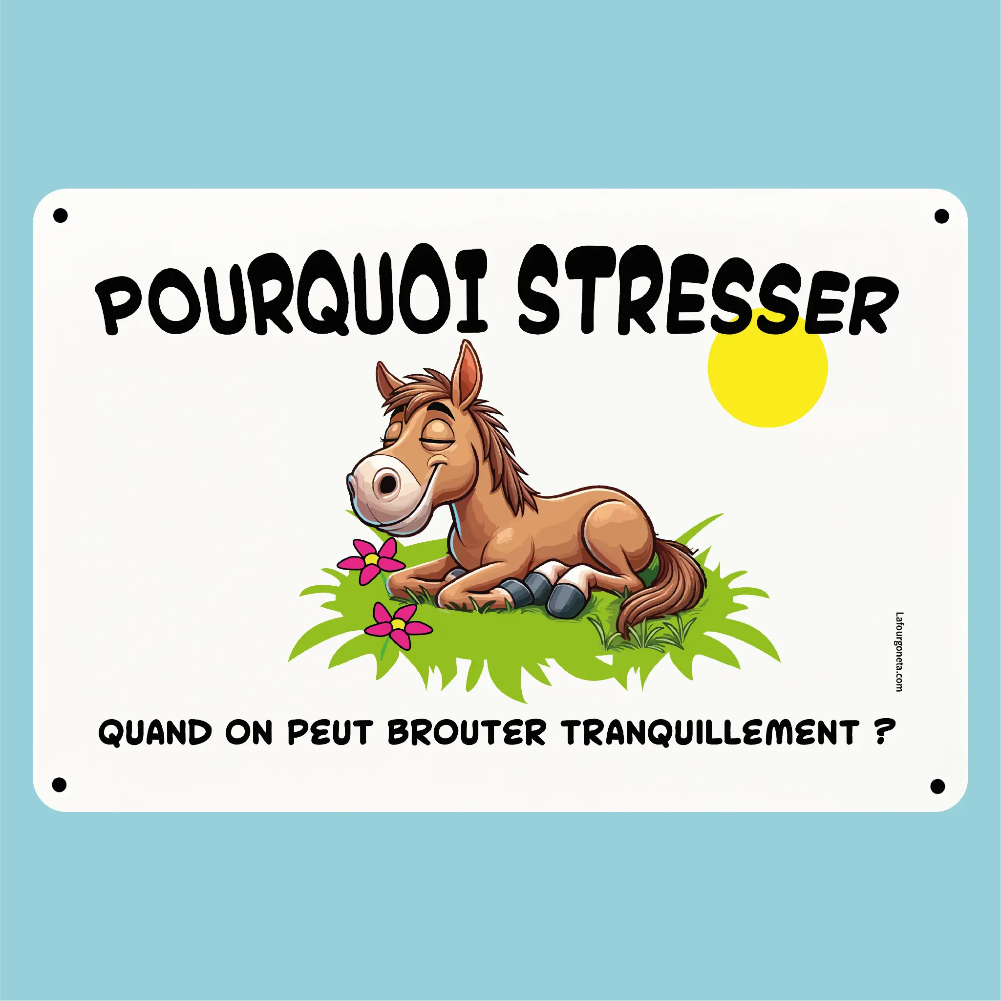 Plaque humoristique: Pourquoi stresser quand on peut brouter tranquillement