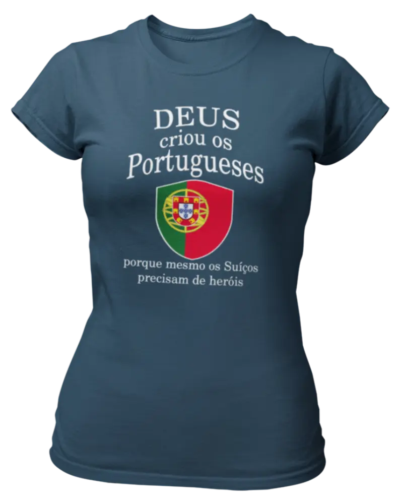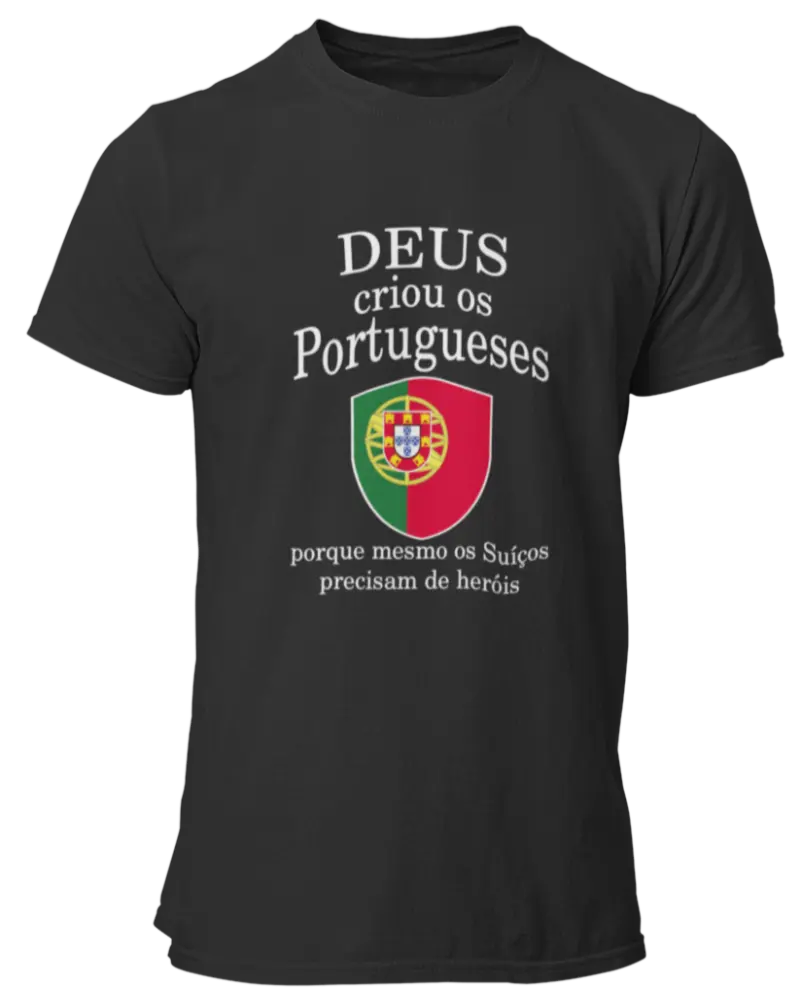 T-shirt Deus crious os portugueses porque mesmo os Suiços precisam de herois
