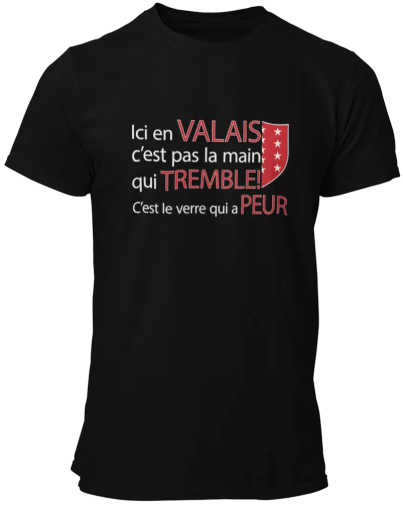 T-shirt Ici en Valais c'est pas la main qui tremble! C'est le verre qui a peur