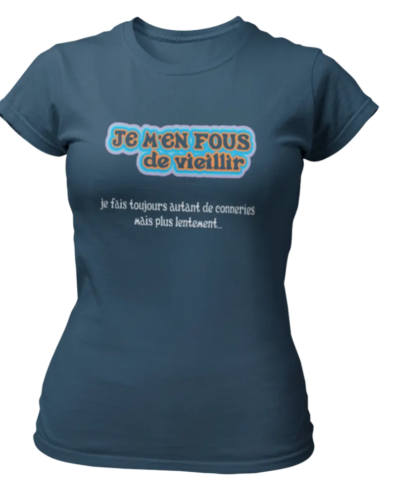 T-shirt Je m'en fous de vieillir, je fais toujours autant de conneries mais plus lentement...