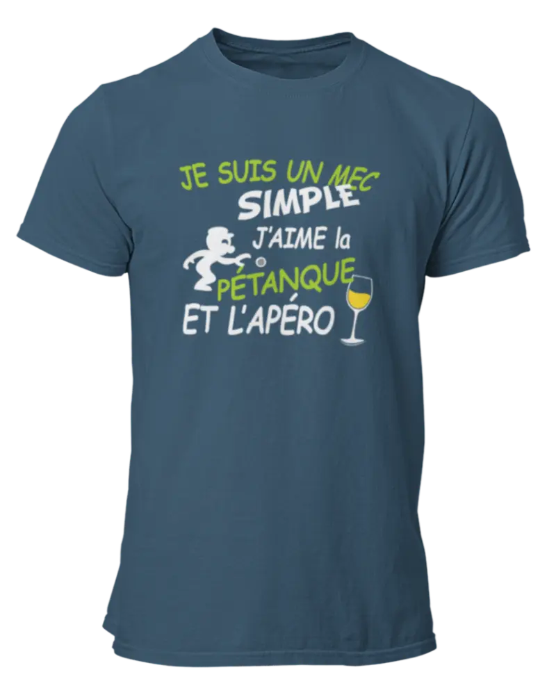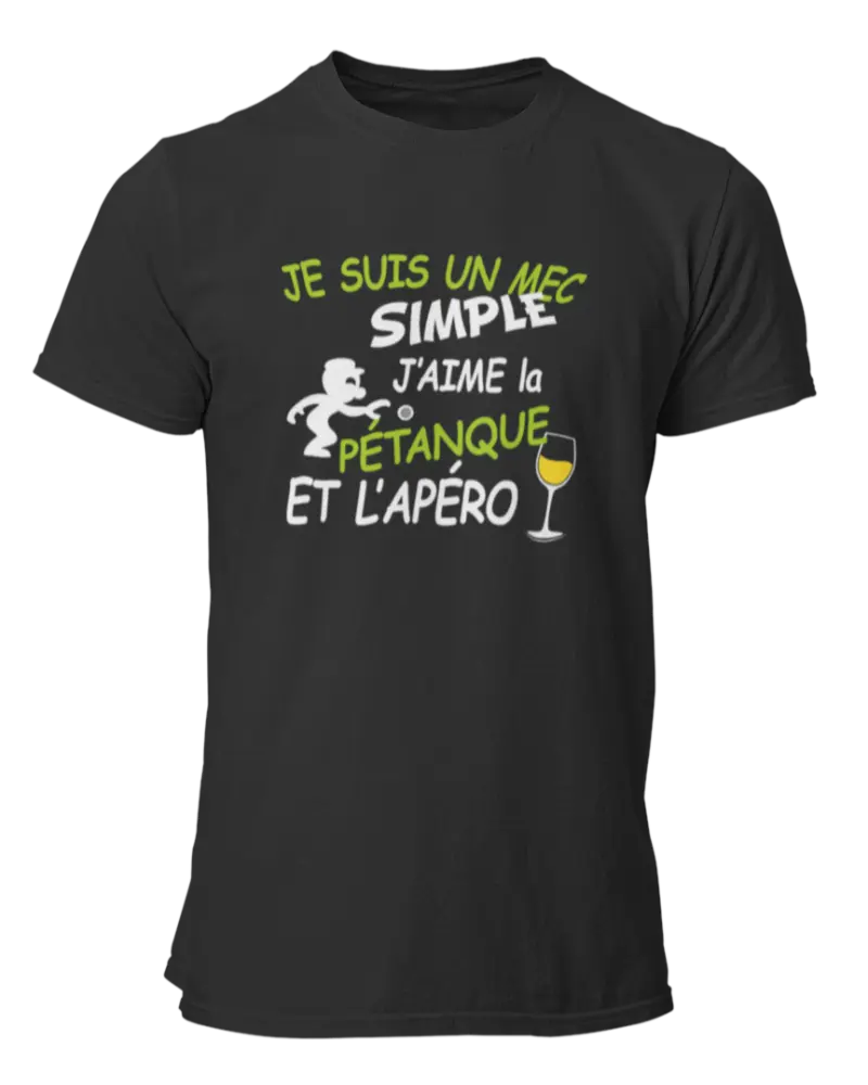 T-shirt Je suis un mec simple j'aime la pétanque et l'apéro