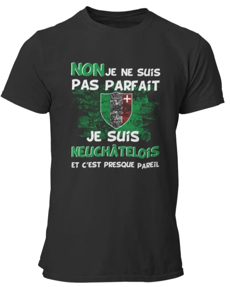 T-shirt NON je ne suis pas parfait je suis Neuchâtelois et c'est presque pareil