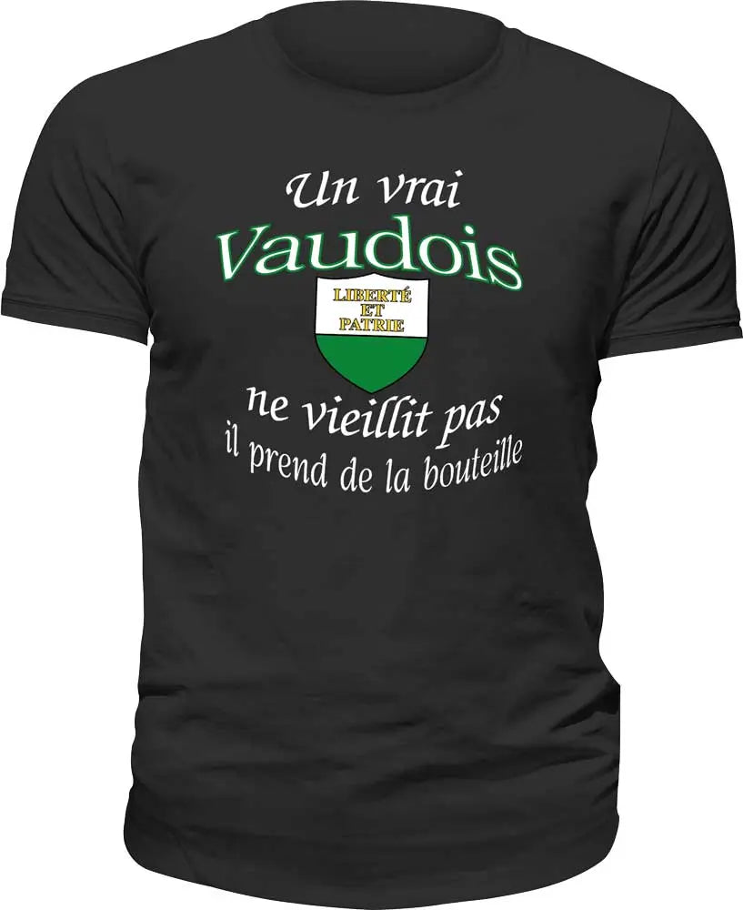 T-shirt Un vrai Vaudois ne vieillit pas, il prend de la bouteille