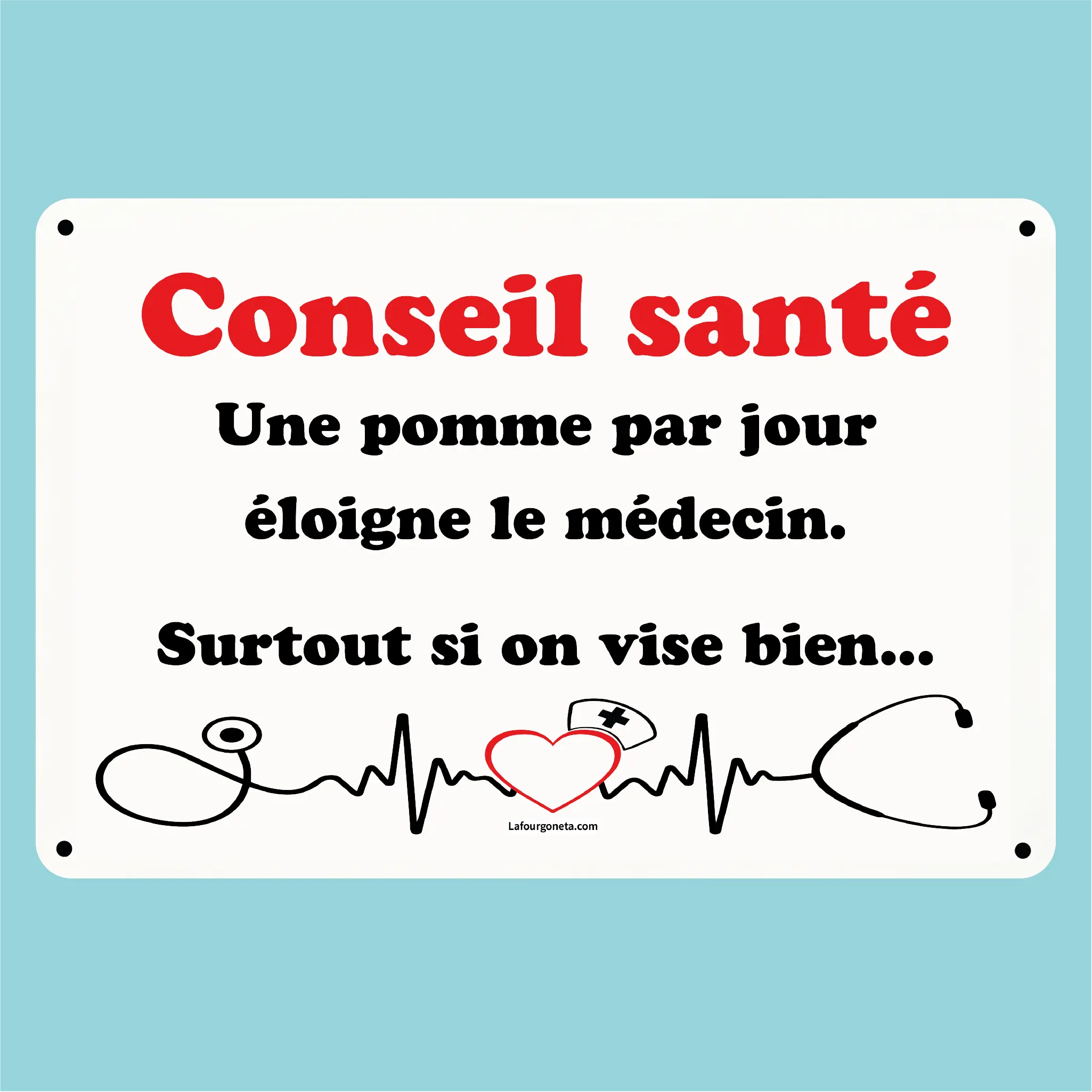 Plaque humoristique: Conseil santé une pomme par jour éloigne le médecin